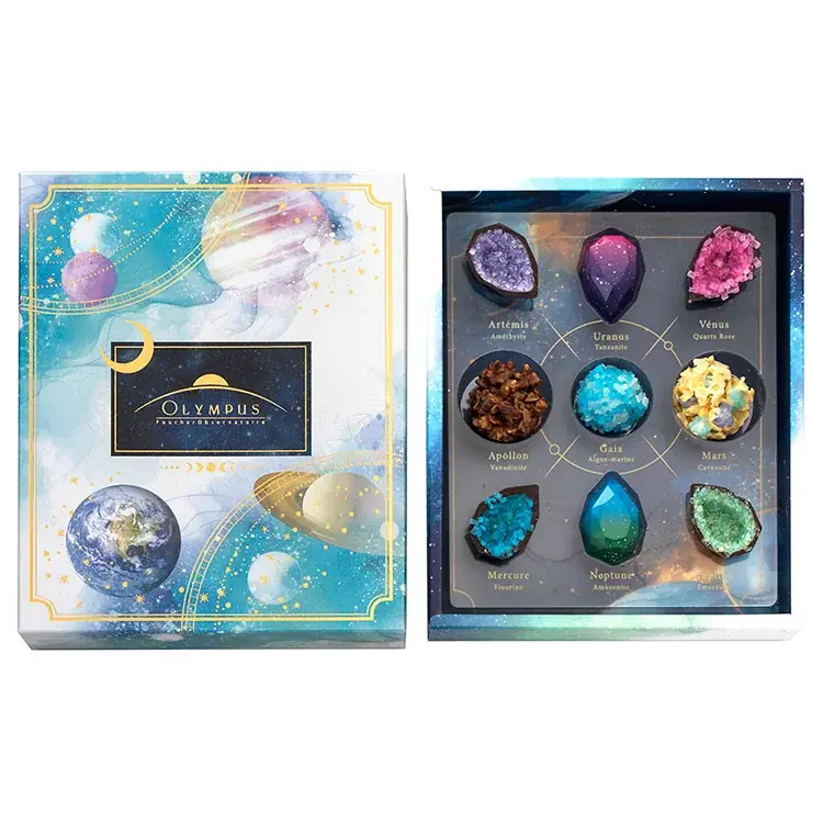 - フーシェ オリンポス — 星の結晶/宇宙鉱物標本(9個入):価格 2,700円。ギリシャ神話をモチーフにした色とりどりのショコラ。