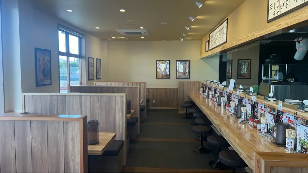 店内の座席構成はカウンター19席、テーブル6卓36席となっており、合計で55席の用意があります。家族連れや少人数での利用、カウンターでのひとり客まで幅広く対応できるレイアウトです。