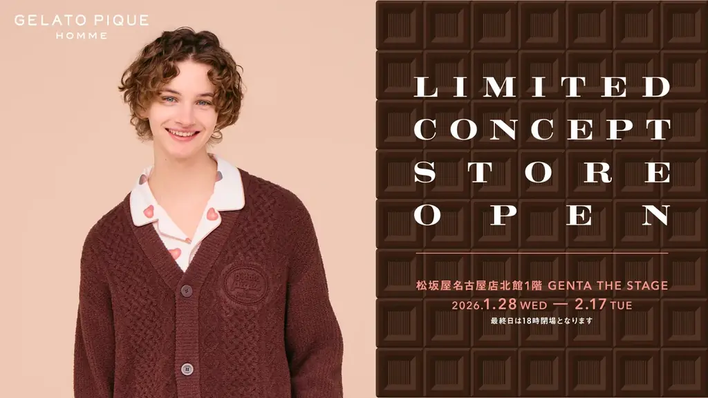株式会社マッシュスタイルラボが展開するメンズルームウェアブランド、ジェラート ピケ オムによるリミテッドコンセプトストアが、期間限定で松坂屋名古屋店 北館1F GENTA THE STAGEに出店します。開催期間は2026年1月28日水曜日から2026年2月17日火曜日までで、営業時間は10:00から20:00、最終日のみ18:00閉場となります。発表日は2026年1月21日12時00分で、運営は株式会社マッシュスタイルラボ(本社 東京都千代田区麹町、代表取締役社長 近藤広幸)です。