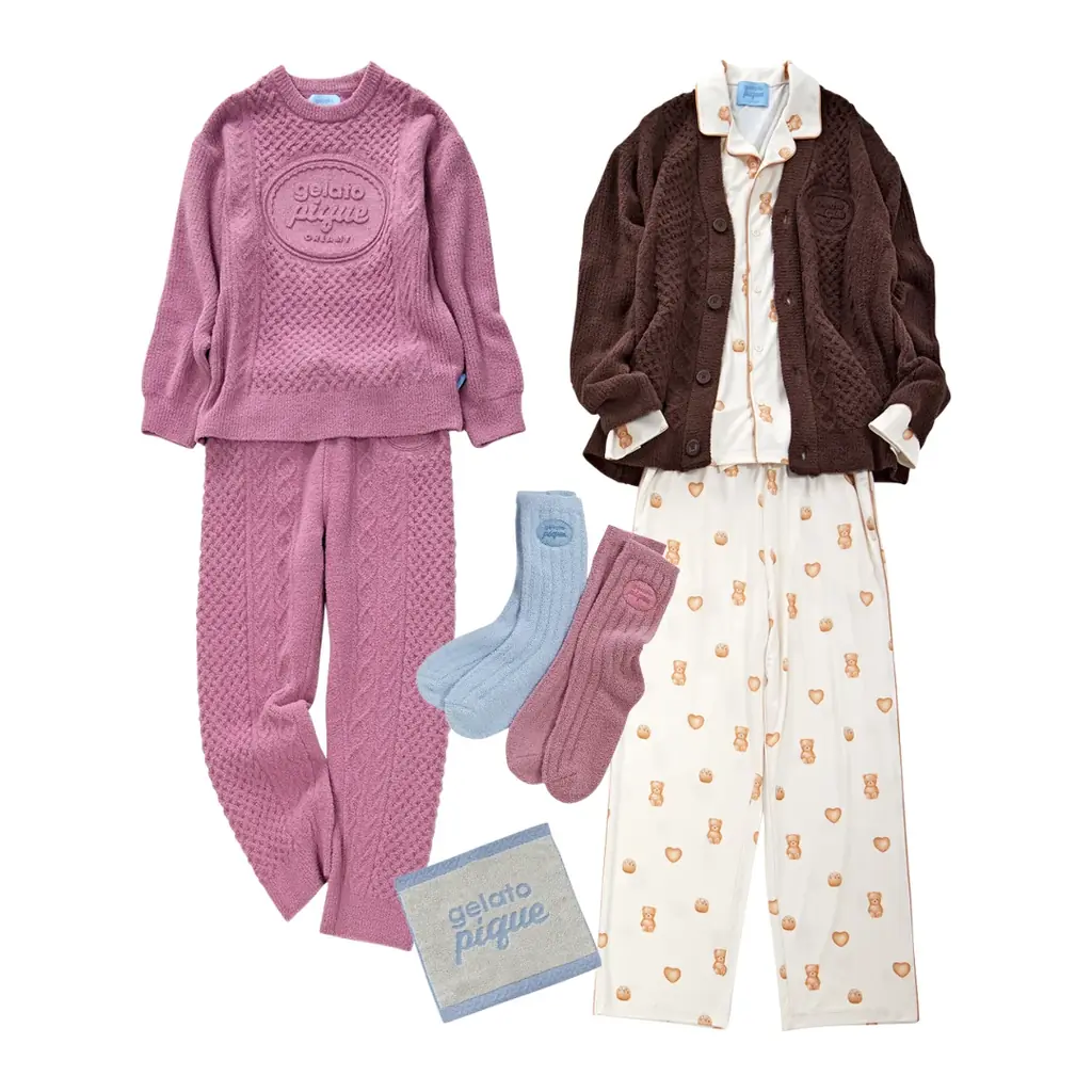 | 主な商品例と価格 | HOMMEアランカーディガン ¥11,440 / HOMME総柄シャツ ¥8,580 / HOMME総柄ロングパンツ ¥8,360 / アランプルオーバー ¥9,680 / アランロングパンツ ¥9,680 / アランソックス ¥3,740 / クッキーサンドハンドタオル ¥1,430 / べビモコグッドモーニングベアピケチャン ¥12,100 / グッドモーニングベアレーヨンロンT ¥6,930 / ボクサーパンツ2枚SET ¥6,490 / ベビモコベアプルオーバー&ロングパンツセット ¥15,840(すべて税込) |
