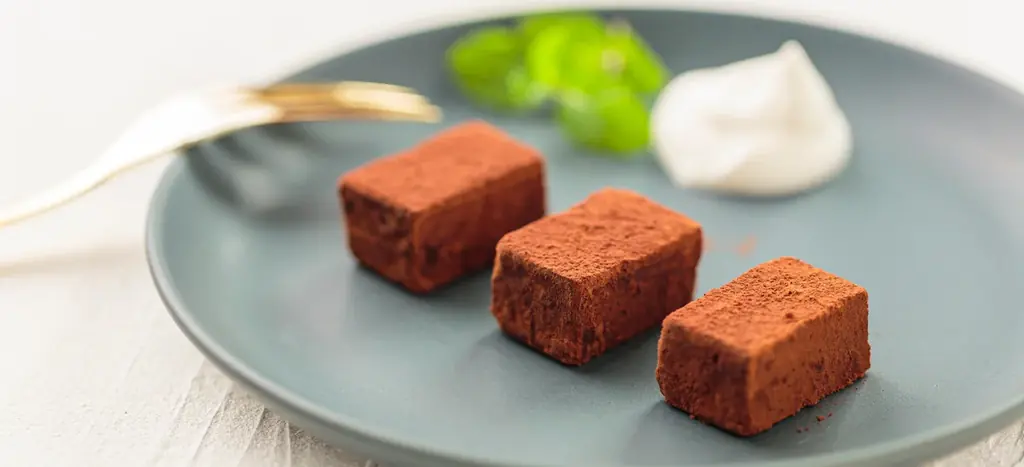 総料理長(星付きホテルのレストランでシェフパティシエを務めた経験あり)が作るレシピで、ピュアカカオマス、エリスリトール、生クリームのみを使用し、カカオの香りと旨味、なめらかな口当たりを追求しています。余計な素材を入れないシンプルな配合が特徴です。