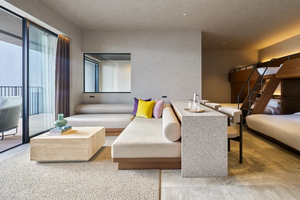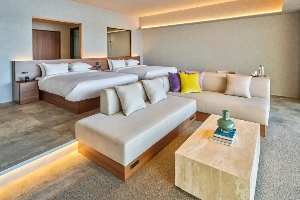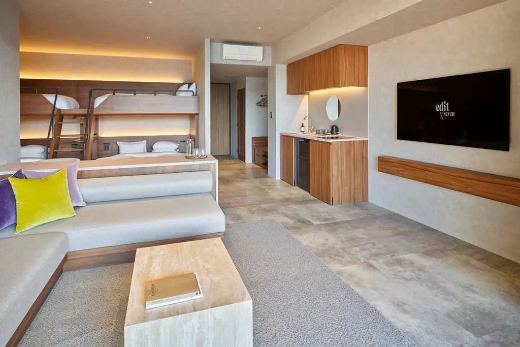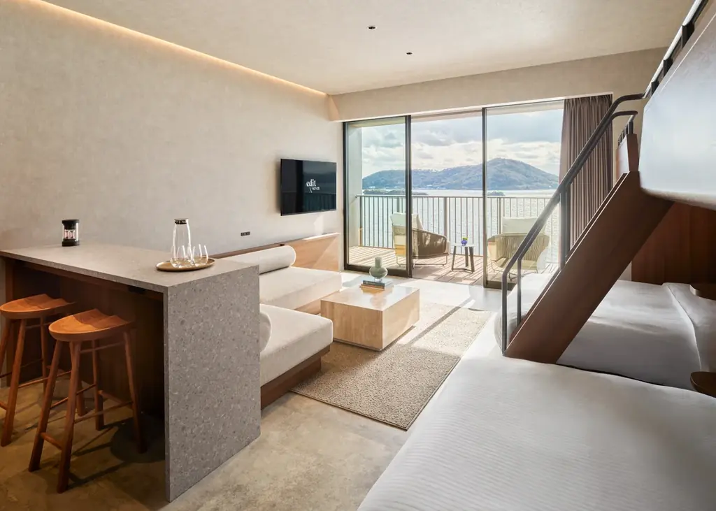 「edit x seven 瀬戸内小豆島」はWEST棟とEAST棟で客室タイプを分け、滞在シーンや人数に合わせた選択肢を用意しています。各客室は瀬戸内の景観やプライベート性を重視した設計で、ファミリーやグループ、ラグジュアリー志向の滞在まで対応します。