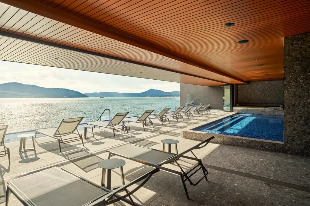 サーマルスパは温度の変化を軸に設計された複合的温浴体験を提供する施設で、ソルト・グループの温浴・スパの知見を基に、小豆島の自然に合わせて再構築されています。大きな特徴はオーシャンビューで一年中利用可能である点です。
