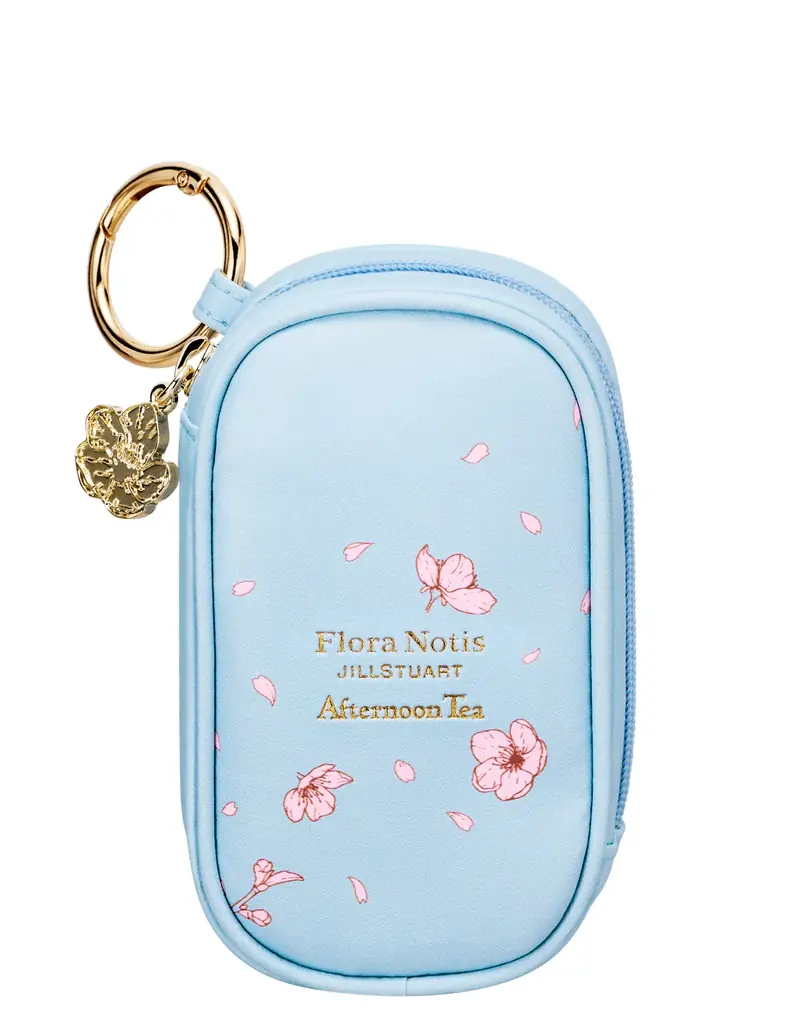 - ハンドクリームチャーム(カラビナ付きミニポーチ): Flora Notisのハンドクリームがぴったり収まるサイズ / ¥2,640(税込)。ミニコスメの持ち運びに便利です。