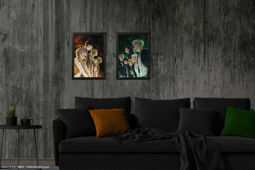 今回発売されるのはアルミ製フレームを用いた金属板印刷の「メタルキャンバス」シリーズで、TVアニメ『WIND BREAKER』のメインビジュアル等を素材にした特別なアート作品である。フレームを含む仕上がりとなっているため、そのまま飾れる完成品として提供される。