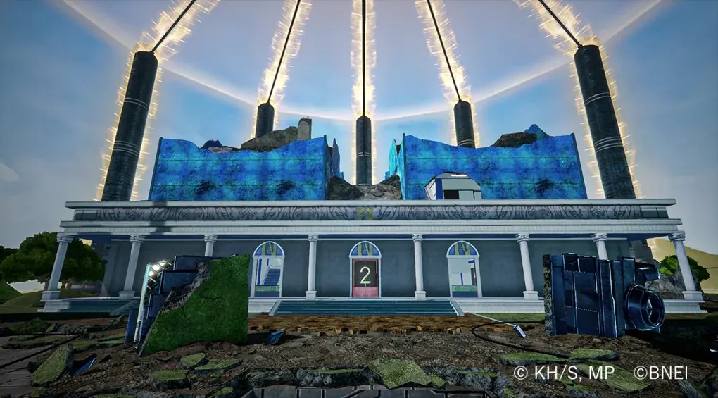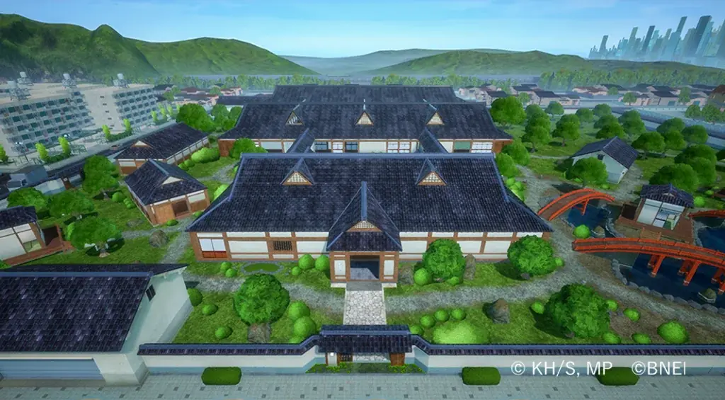 ネオ・アカデミアは中心にある天空エリアを軸に、周囲に日本家屋エリア、病院・研究所エリア、建設現場エリア、ダツゴク暴動エリア、水没エリアが配置される設計である。天空エリアのワープゲートが戦略の鍵となる。