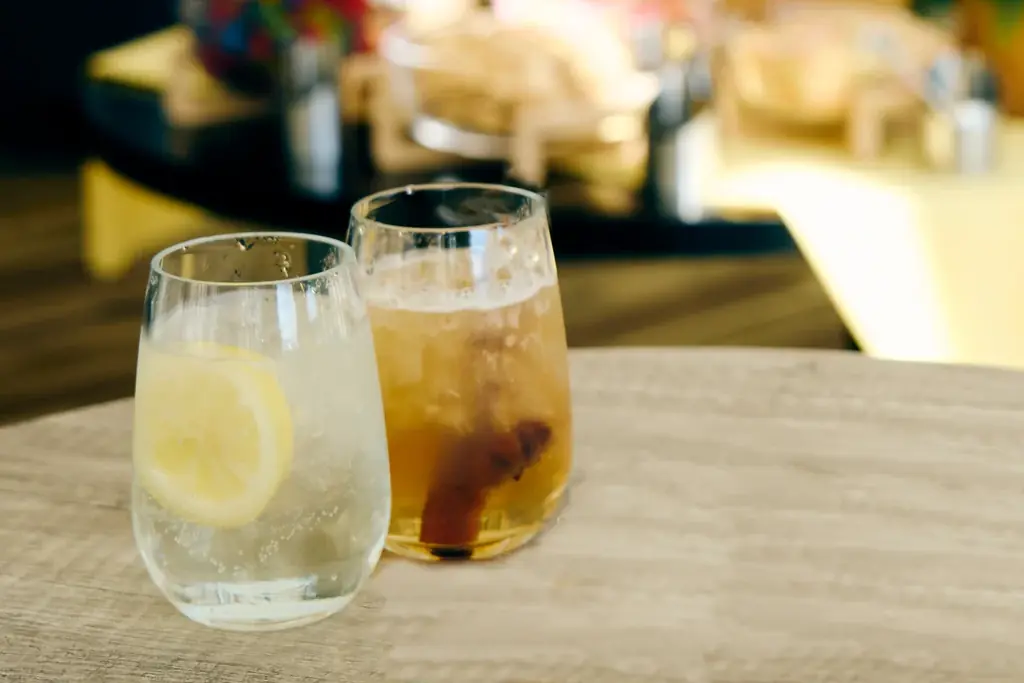 提供されるカクテルとモクテルは、以下のレシピを基本にセルフで組み立てられます。アルコールとノンアルコールの両方を用意。
