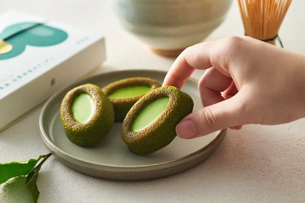 食感はしっとりとやわらかく、抹茶の香りが口に広がるとともに、奥行きのある旨味が感じられる設計です。一口ごとに出雲地方の穏やかな自然の風景と、茶葉に込められた人々の営みを想起させるような味わいを目指しています。