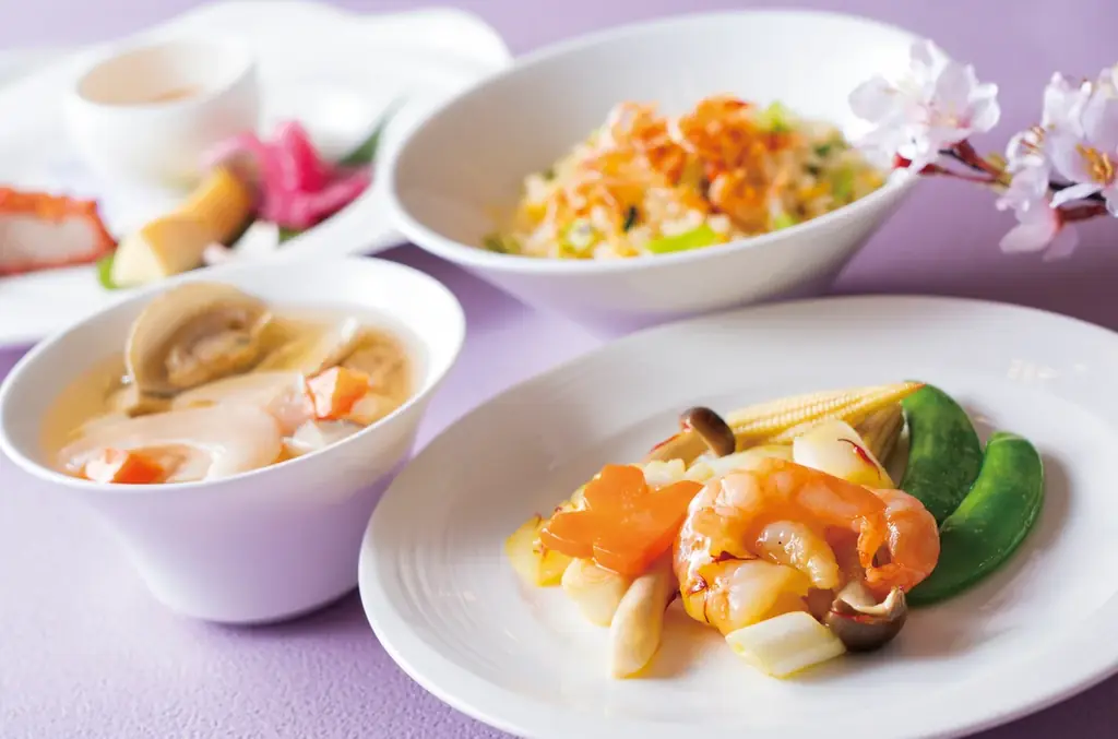 提供メニューは平日限定の飲茶ランチから、祝いの席にもふさわしい内容のディナーコースまで多彩です。中国料理統括料理長の李国超による監修で、この時季ならではの食材を活かした構成となっています。