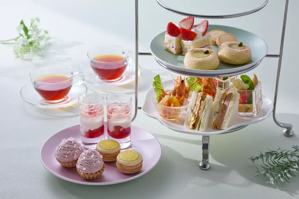 アフタヌーンティーは「いちご×Spring」をテーマに、苺や桜、柑橘を用いたスイーツや彩り豊かなセイボリーを揃え、視覚・味覚ともに春を感じられる構成です。提供期間は2026年3月1日〜4月30日です。