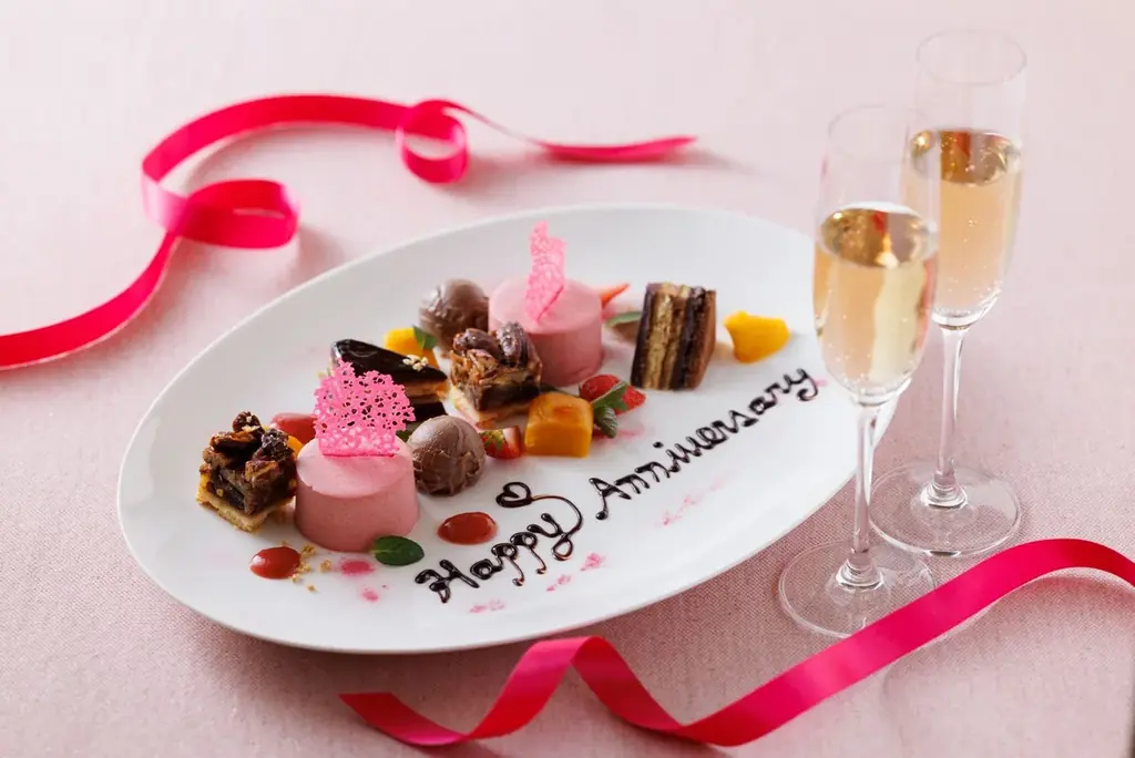提供される料理は中華とフレンチの両シェフの技術を活かしたフルコースで、季節感を取り入れた内容が想定されています。記念日向けの特典としては、ペアシートの確約、季節のカクテル、2名様分のデザート盛り合わせが含まれます。販売期間は2026年3月1日(日)までとなっています。