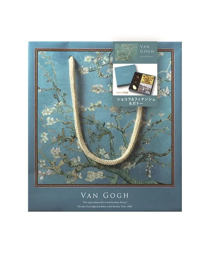 - ゴッホ ショコラ&フィナンシェ&ガトー:1,297円(税込1,400円)/発売日:2026年2月3日(火)/全国。内容:「花咲くアーモンドの木の枝」をショッパーにデザインした3種のアソート。