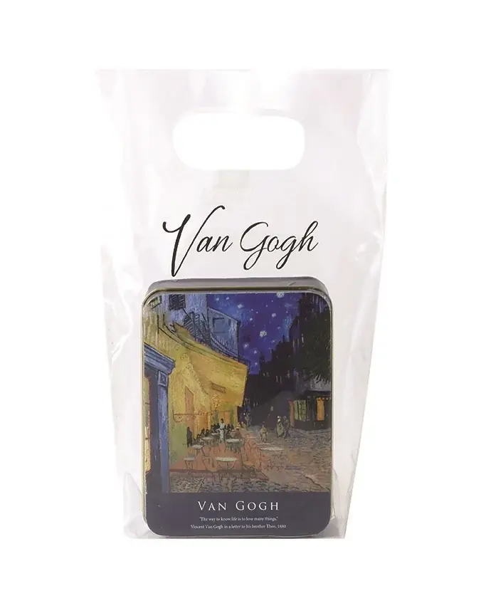 - ゴッホ ショコラ缶:1,389円(税込1,500円)/発売日:2026年2月3日(火)/全国。内容:「夜のカフェテラス」をデザインした缶にショコラ5個入り。