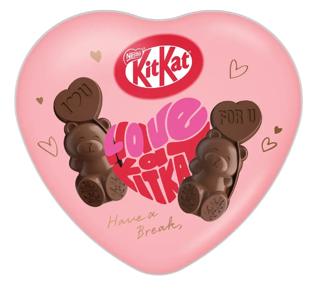- キットカット ハートフルベアー ハート缶:1,600円(税込1,728円)/発売中/全国。内容:クマ型キットカットがハート缶に入った商品。