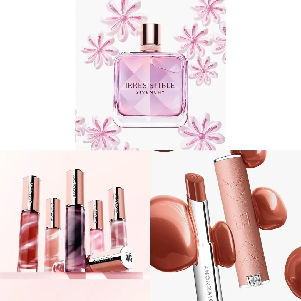 - イレジスティブル オーデパルファム ネクター 19,910円、PFCT・セラム・リップオイル 5,280円、ローズ・パーフェクト・シャイン(リップスティック) 5,060円。春の新作コスメとして展開。