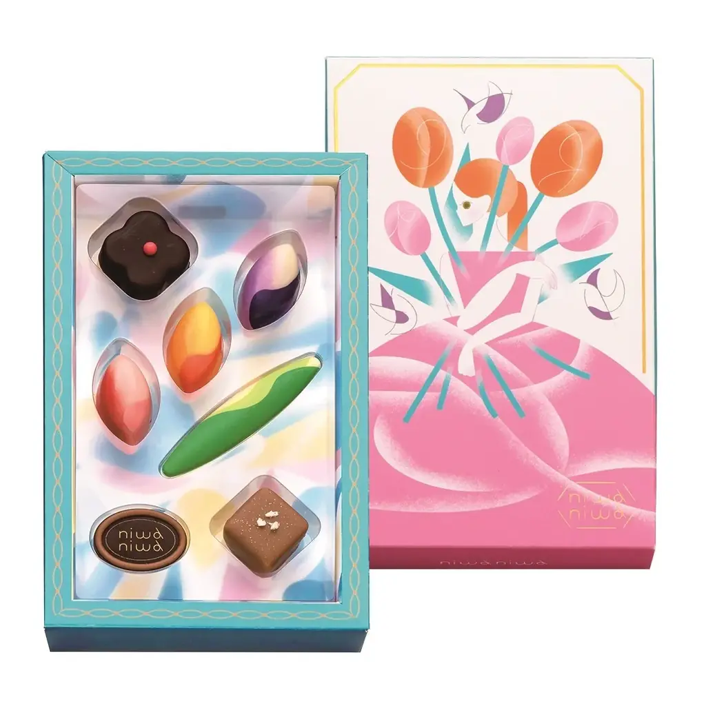 - 7個入 1,620円。庭の花々を束ねたような彩り豊かなショコラアソート。一粒ごとに異なる味わいが楽しめる。※なくなり次第終了