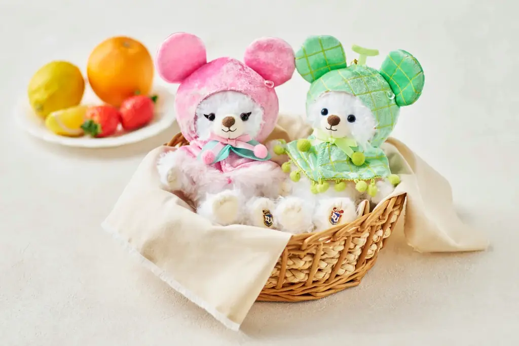 さらに、ユニベアシティ(UniBEARsity)向けのぬいぐるみキーチェーン専用コスチュームとして、フルーツをモチーフにしたポンチョが登場します。フード部分にミッキーをイメージした丸い耳がつき、光沢感のある生地や透明ビーズでみずみずしさを表現しています。