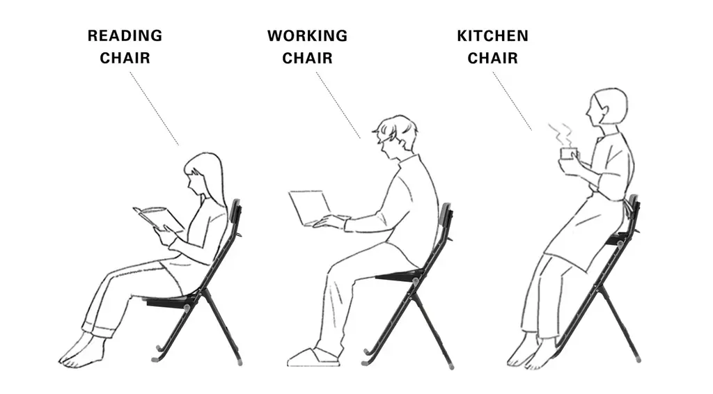 ロブションは座る行為をひとまとめにせず、用途や姿勢に応じた快適性を提供します。読書、デスクワーク、作業中の小休止など、行為別に適した姿勢が異なる点に着目し、人間工学に基づいた座面高調節機能を搭載しています。