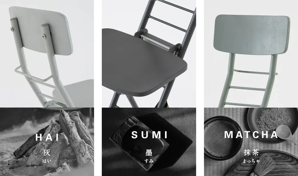 色味にはシリーズを通じて日本の伝統色を意識した落ち着きのあるトーンを採用し、和洋どちらのインテリアにも調和することを意図しています。材料は精緻に仕上げたスチールフレーム(粉体塗装)と積層合板(ラッカー塗装)で構成され、外観の上質さと実用性を両立しています。