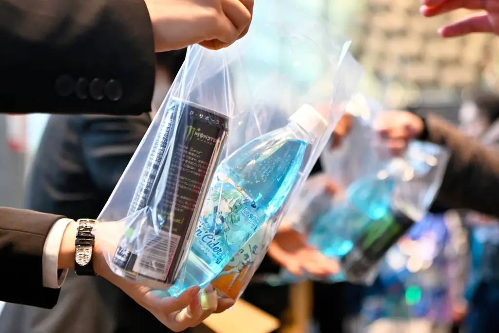 会場ではオフィシャル物販が実施され、即日売り切れとなった商品もありました。来場者にはメインビジュアルを使用したドリンク等を詰め合わせたお土産も配布されました。