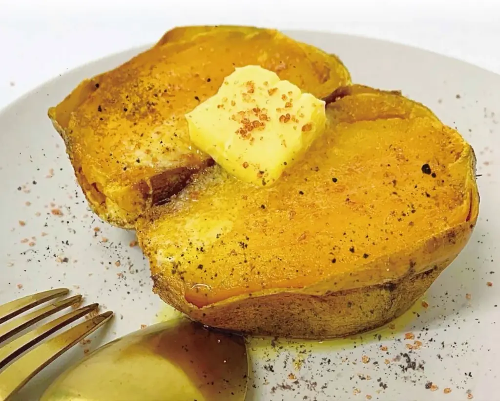 - 倉敷芋屋 蜜の月 — 蜜芋トリュフバター。トロトロのお芋に濃厚なバターを乗せ、ハワイアンソルトとトリュフを効かせた一品。