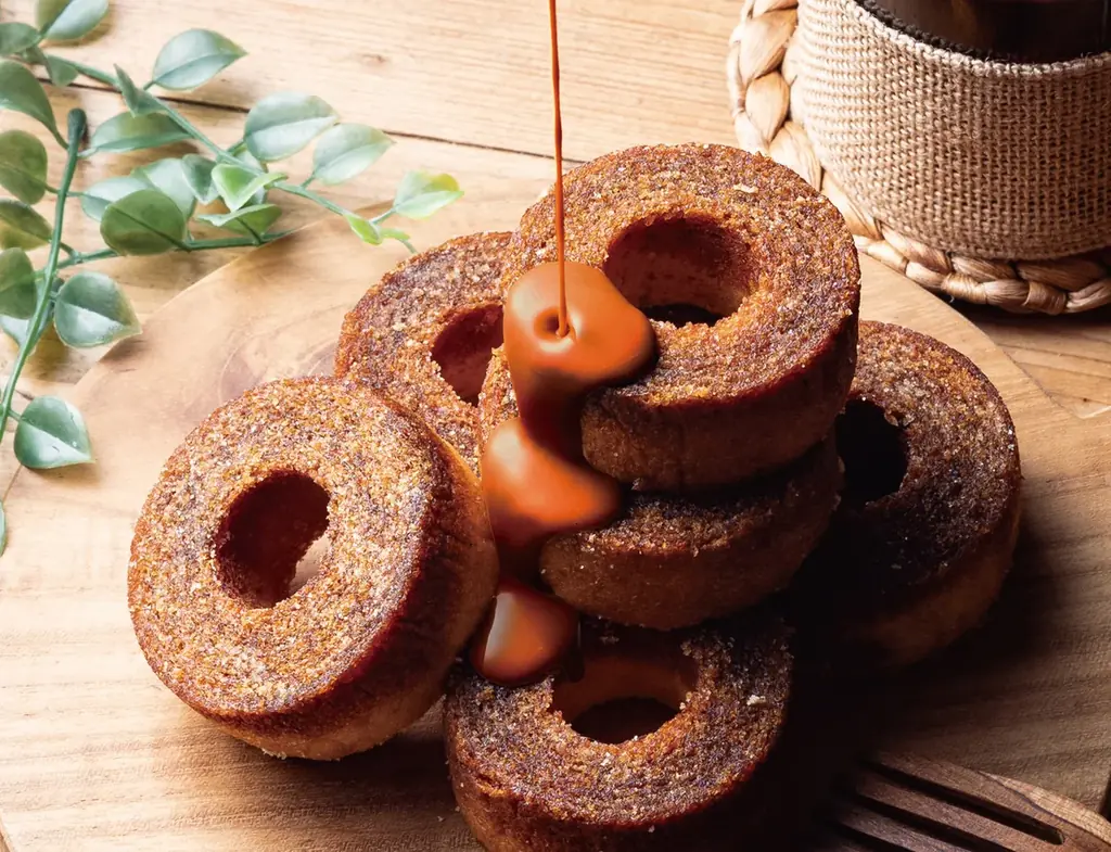 - ふんわり焼き上げたバウムクーヘンの表面にカラメルソースと砂糖をかけ、再度オーブンで香ばしく焼き上げた商品です。しっとりとした生地とキャラメリゼされた表面の香ばしさが重なり、より贅沢な味わいに仕上がっています。