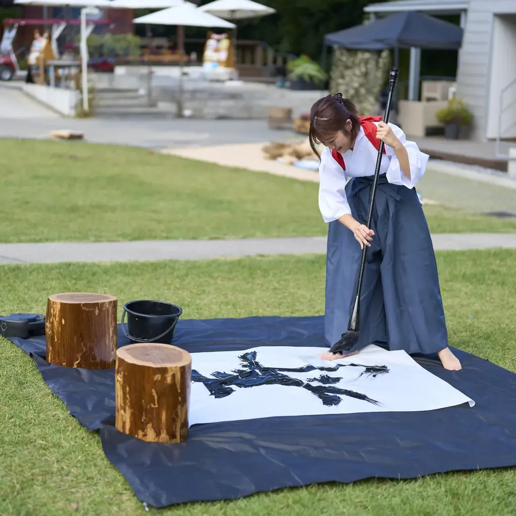 | 書道パフォーマンス体験 | 13:00〜15:00 | 体験会場 | 500円(税込)/回 | 巨大な筆を使った体験 |