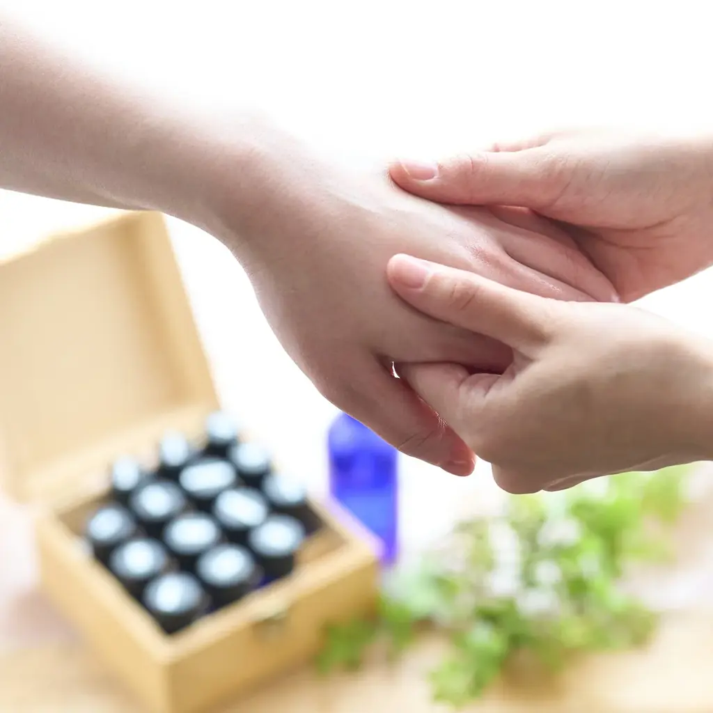施術:スパ ジュール・フェリエ セラピスト/料金:10分 1,500円(税込)/人。アロマオイルを用いたハンドケアで手元のケアが可能です。