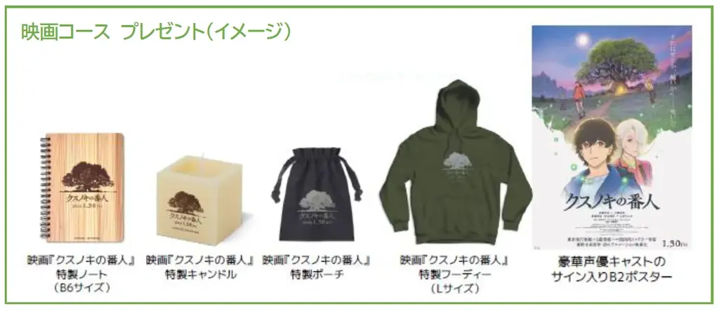 | 映画コース賞品(主な内訳) | サイン入りB2ポスター(3名)、特製フーディー(L)(5名)、特製ノート(B6)(12名)、特製キャンドル(5名)、特製ポーチ(5名) |