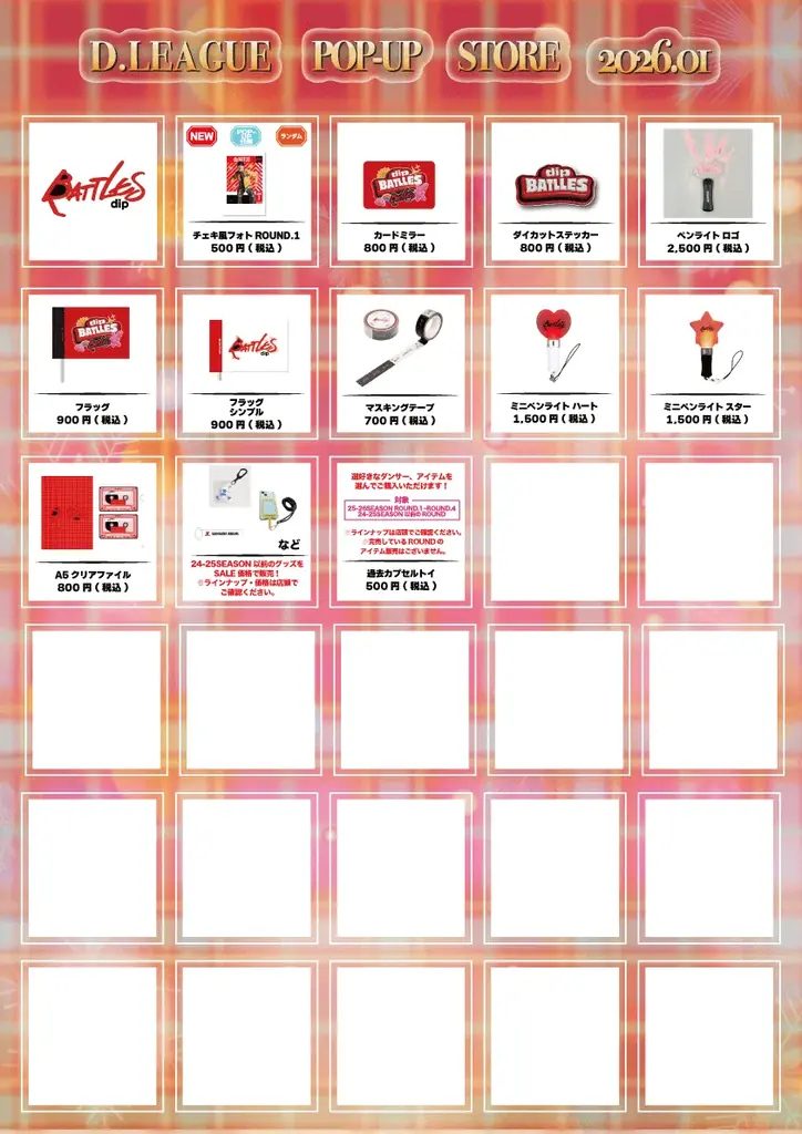 - イベント申込ページ(お渡し会):https://livepocket.jp/t/dleague_popup_store_202601