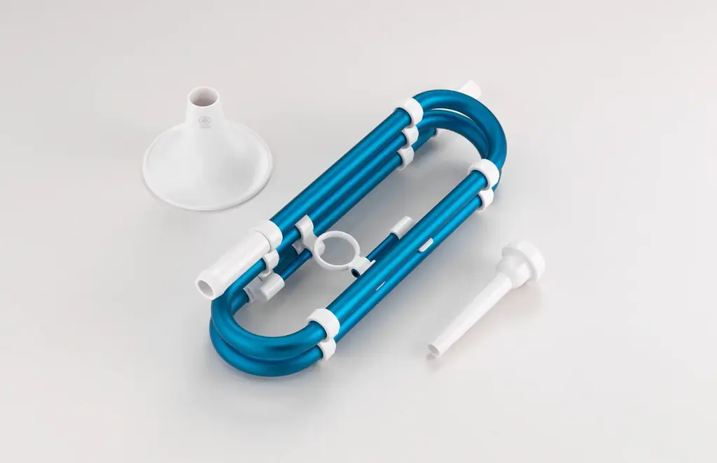 | 主な特長 | 分岐管構造によるトランペット様の音色、軽量(約180g)、高耐久(管厚約1.0mm)、バルブ非搭載で指づかい不要、ベル取り外しで音量調整可能、水洗い可能なお手入れ性 |