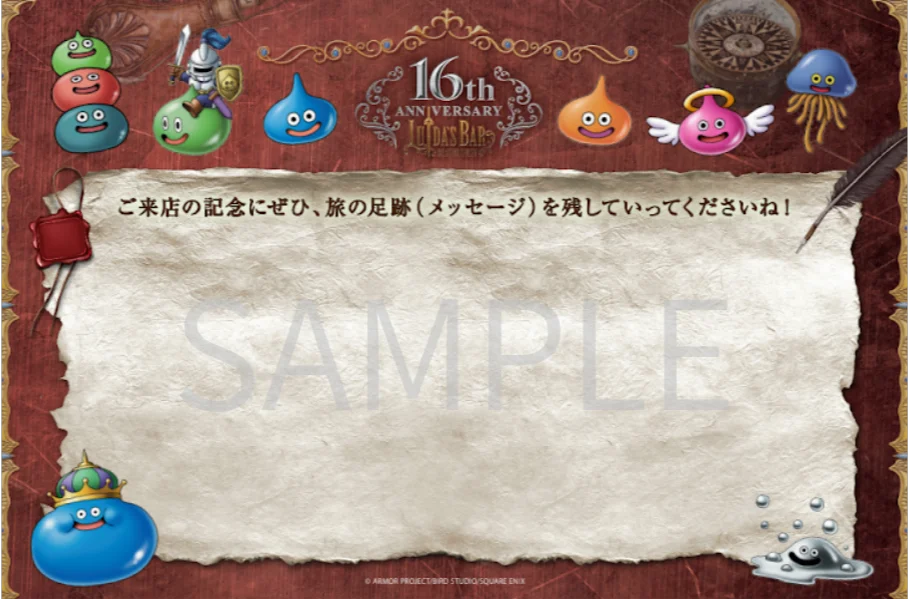 店内にメッセージボードを掲示し、来店者が「ドラゴンクエスト愛」や「ルイーダ愛」を書き残せる形式を採ります。来店の“足跡”としてメッセージを残すことができる企画で、掲示期間はステッカーやドリンクと同期間です。