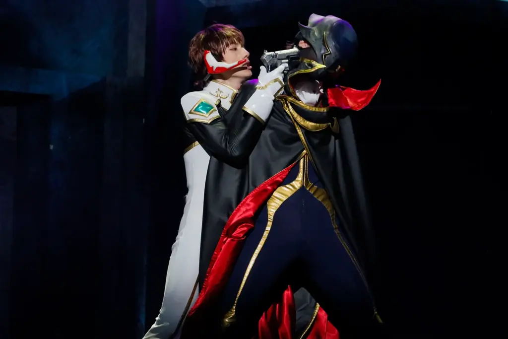 本作は、物語を通じて繰り返しに問いかけられる“正しさとは何か”を軸に進む。世界唯一の超大国である神聖ブリタニア帝国による支配下の日本(エリア11)で、異なる信念を持つ2人の親友が互いを知らずに戦う状況を、舞台ならではの表現で浮かび上がらせている。ゲネプロで観た舞台は、人物の内面描写とナイトメアフレームを模したアクションが同時に迫ってくる構成だった。