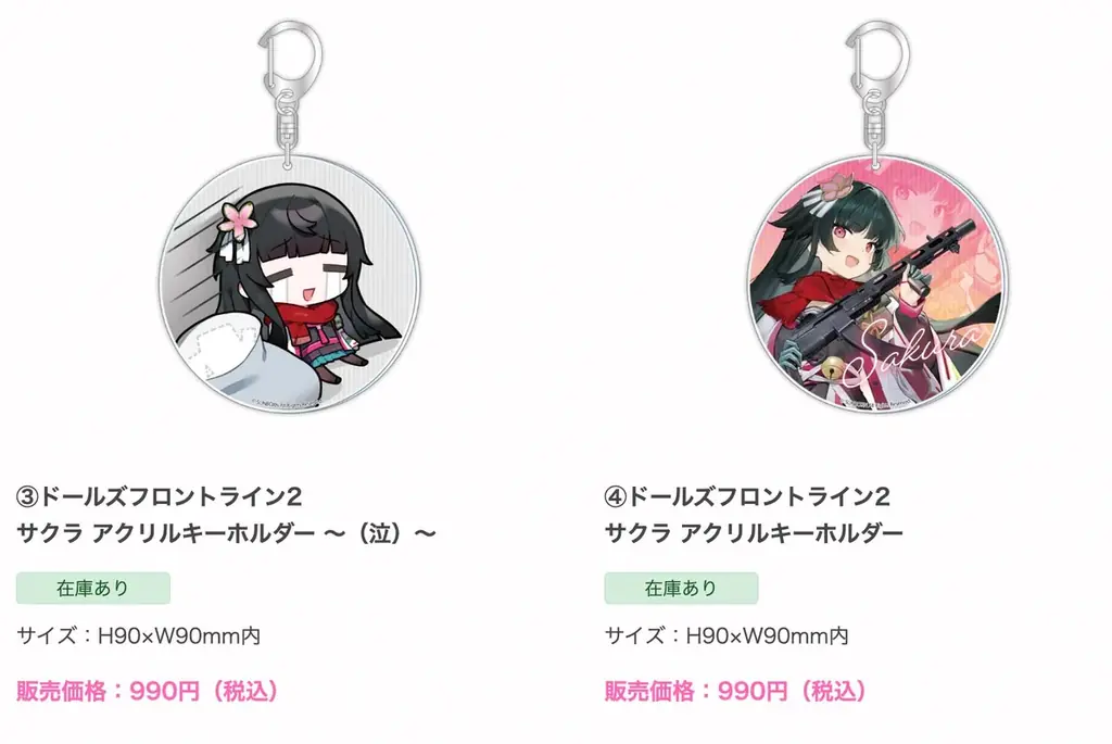 | サクラ アクリルキーホルダー(4種) | 各 H90×W90mm内 | 各 990円 |