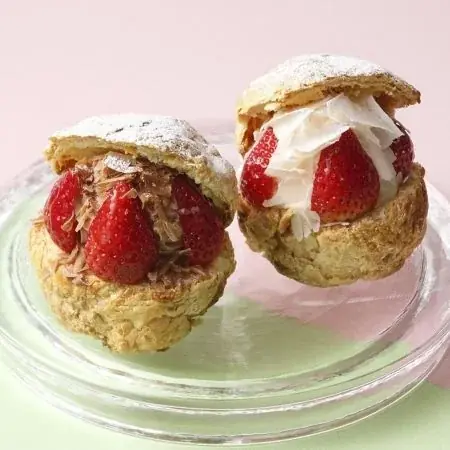提供アイテムは2種で、左が「ショコラのパイシュー」、右が「苺のパイシュー」。どちらも1個 各778円で、クリームと苺をたっぷり詰めた構成になっています。