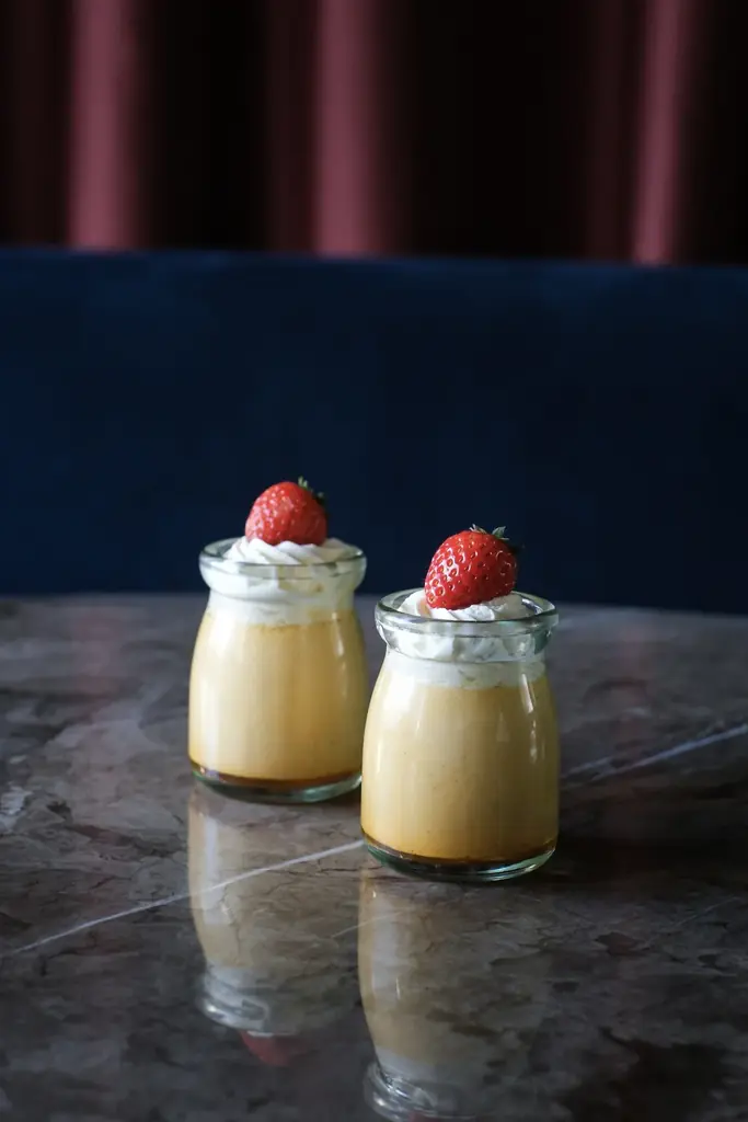 監督との打ち合わせを重ね、見た目はシンプルに、昔ながらの固めの食感に仕上げたプリンです。キャラメルは焦がしすぎず、優しい甘さとほろ苦さのバランスを重視し、子どもから大人まで楽しめる地域に愛される洋菓子屋の定番を目指した味わいです。