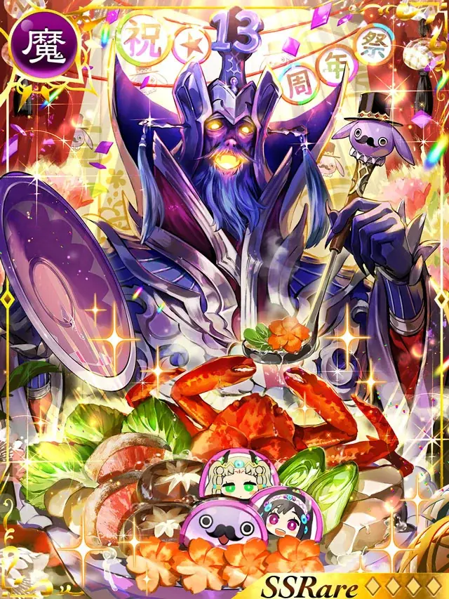 開催期間: 2026年2月1日(日)00:00〜2026年6月30日(火)23:59。期間中にログインしたユーザーにSSレア「アニバーサリー・鍋奉行」が配布され、最大で5枚獲得可能。5枚集めると【SSレアFULLMAX】まで限界突破できる仕様。 - 13周年記念ガチャ券プレゼント