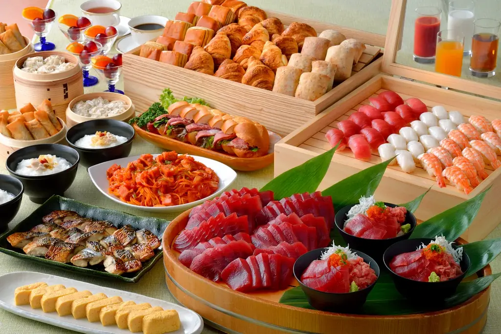 翌朝の朝食は、ホテル5階のレストラン「DINING&BAR BAYSIDE」にて和洋中約40メニュー以上のビュッフェが提供されます。営業時間は6:30から9:30(最終入店9:00)で、宿泊者はプランに含まれます。特に人気のメニュー「三崎マグロ」は刺身や海鮮丼として利用者が好みに合わせて選べる品です。仕入れ状況によりメニューが変動する場合があります。