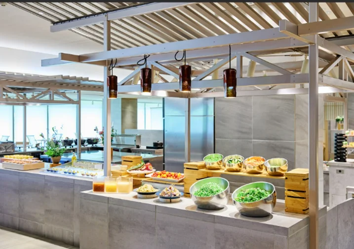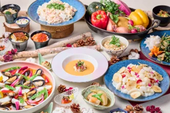 ビュッフェダイニング「季しかり(ときしかり)」は、開放感のある広々とした空間で旬の食材を活かした料理を提供するダイニングです。和食の繊細さと洋食の優雅さを取り入れ、器や盛り付けにもこだわることで、ビュッフェでありながら落ち着いた食事体験を演出しています。