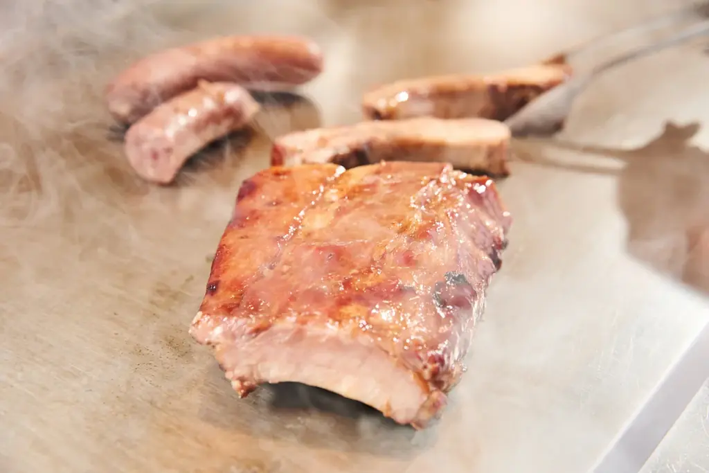 ライブキッチンでは日替わりで肉料理と魚料理を提供します。調理の音や香り、シェフの手仕事が食事の臨場感を高める構成です。料理のほとんどがその場で仕上げられ、出来立てを楽しめます。
