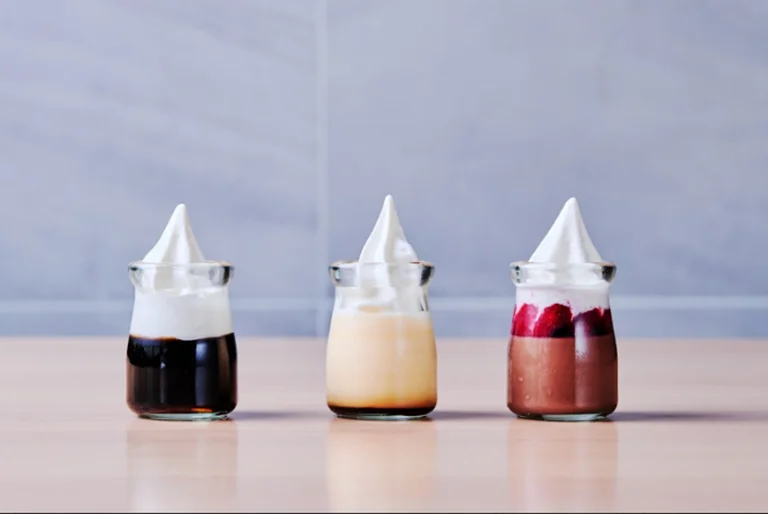 スイーツにはソフトクリームをのせたアレンジ例も示されており、デザートのバリエーションを豊かに楽しめる構成です。フルーツは4種類を用意し、お子さま向けメニューも3種類用意することで三世代での利用にも配慮しています。