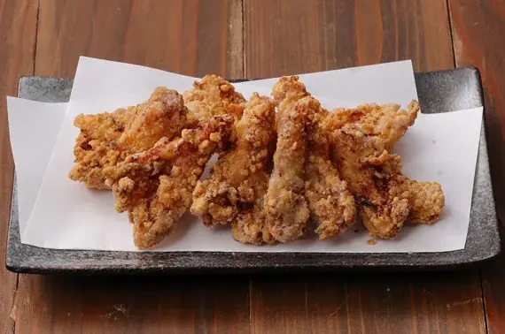 - 骨付きVチキンだし味:鶏の鎖骨部分「まつば」を使用。骨付き肉の旨みと適度な脂身が楽しめる希少部位を、北海道産真昆布と枕崎の鰹節の一番だしをベースにした醤油ダレに漬け込み、カラッと揚げて提供。16万食限定での復刻。