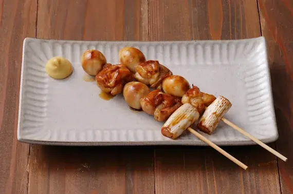 - いとこ串 たれ:国産うずら卵と鶏もも肉を秘伝のタレで焼き上げた串。秘伝ダレで香ばしく焼き上げることで、しっとりとした食感のうずら卵とともに味わえる。