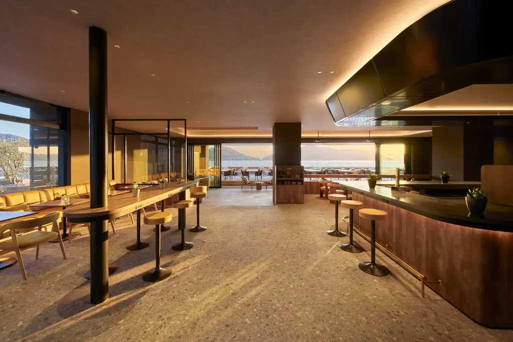 「Restaurant edén SETOUCHI」は朝食からディナーまでをカバーするレストランで、瀬戸内や小豆島の豊かな食材を主役に据えたメニューを提供します。小豆島の旬の魚介、島野菜、オリーブ牛、オリーブハマチなど地域の特色ある素材を活用します。
