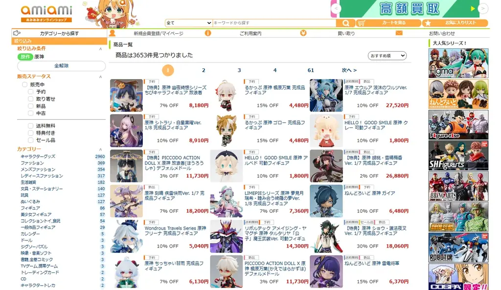 | 販売サイト | https://www.amiami.jp/、https://realstore.amiami.jp/、製品ページ |