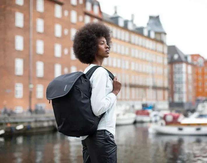 Thule Accent は日常の通勤や短期の出張、オンオフ兼用の使い方に適したバランスの良いバックパックです。クリーンな北欧デザインを採用し、ビジネスシーンでも違和感なく使えます。