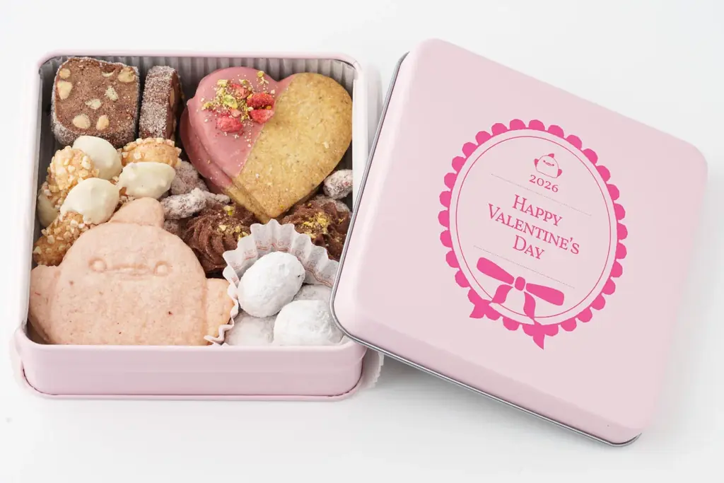 「ひよりの手作りクッキー缶(バレンタインVer)」は、厳選素材を使用して職人が手作りで焼き上げた7種類のクッキーを、バレンタインをイメージした華やかなデザイン缶に詰め合わせた商品です。食感はサクッからほろりまで多様で、味のアクセントがそれぞれに設けられています。