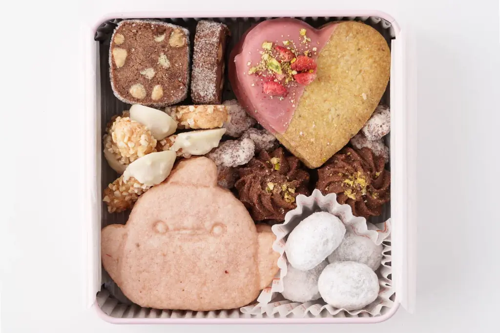 - ピスタチオと苺のクッキー:ハート形の見た目で、苺とピスタチオのアクセントが楽しめる。
