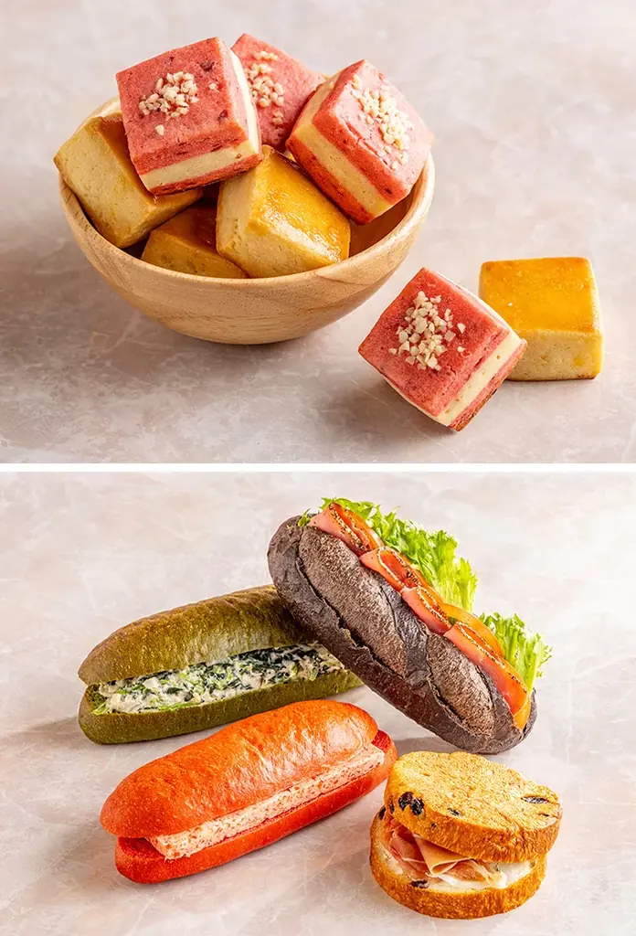 - サンドイッチ4種:ココアバゲットにターキーパストラミと野菜、フランボワーズパンにいちごバターのデザートサンドなど