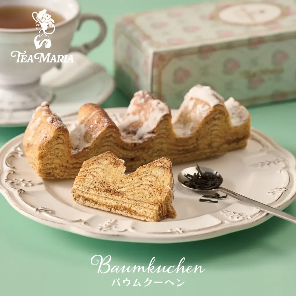 ダージリン茶葉を生地に練り込み、しっかりと焼き上げたハードタイプのバウムクーヘンです。幾層にも重ねた生地構造により、噛むほどにダージリンの芳醇で繊細な香りがほどけていきます。